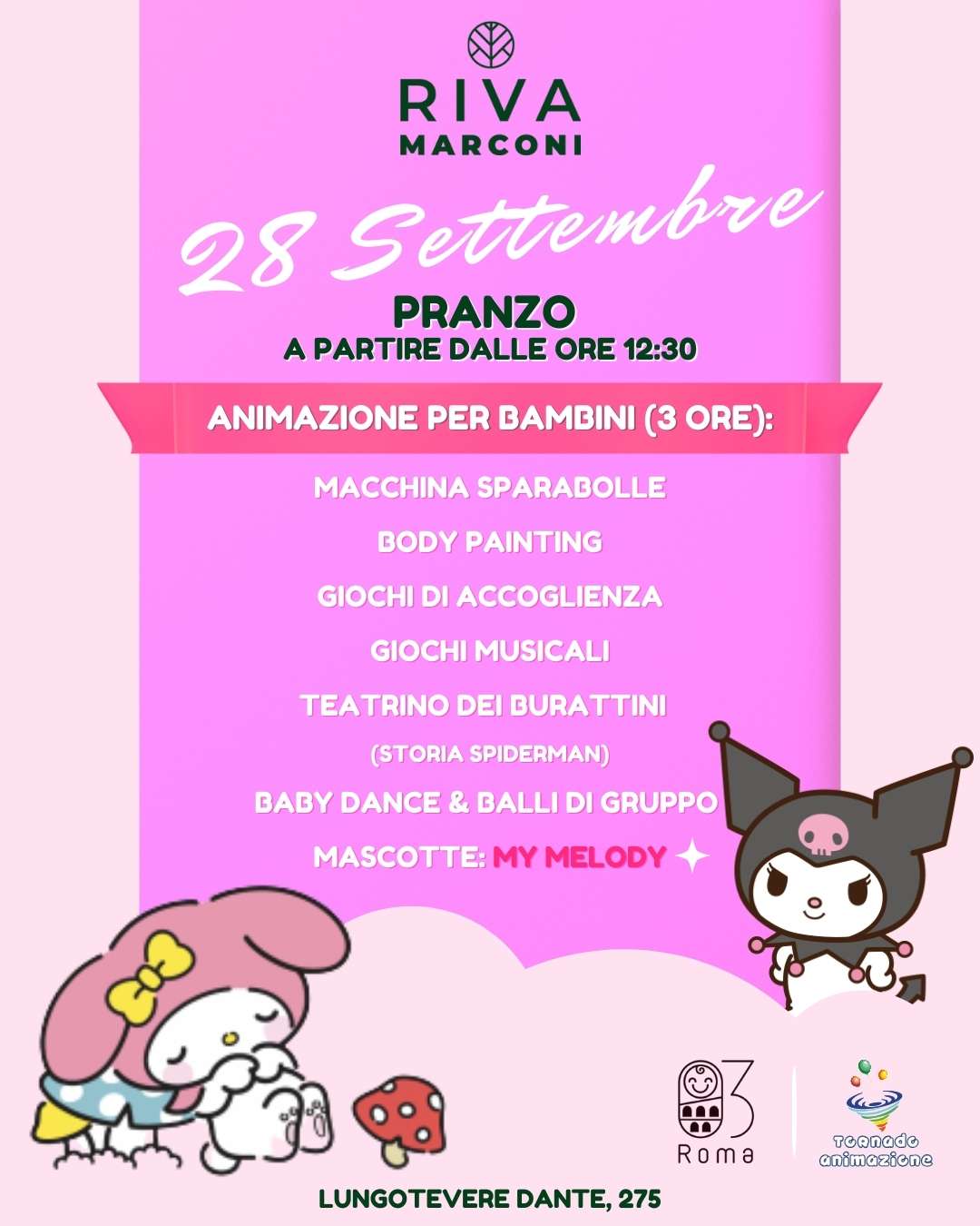 Domenica 28 settembre, dalle 12:30, Riva Marconi ti aspetta per un pranzo in famiglia con animazione dedicata ai più piccoli per ben 3 ore!