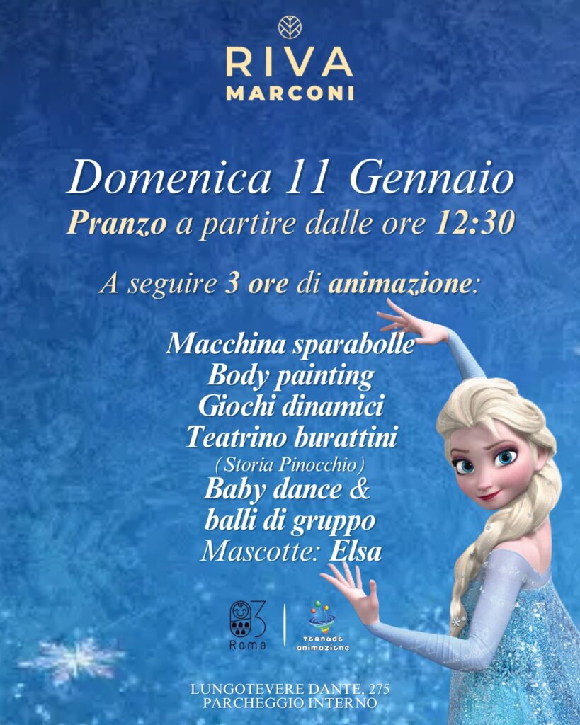 Domenica 11 gennaio Riva Marconi dedica la giornata alle famiglie con un evento pensato per far sognare i più piccoli e regalare ai grandi un pranzo sereno e piacevole. Il pranzo inizia dalle ore 12:30 e, a seguire, prende vita un pomeriggio di tre ore di animazione studiato per coinvolgere i bambini in modo attivo […]