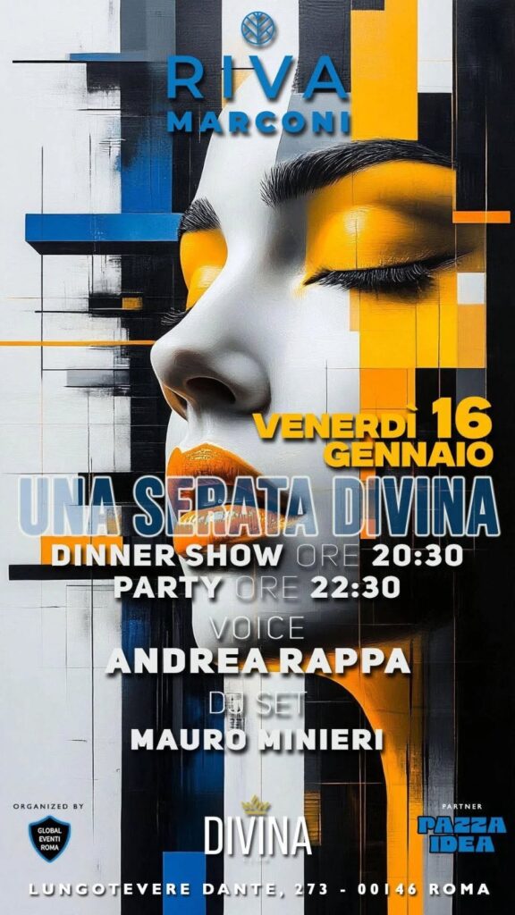 Venerdì 9 gennaio Riva Marconi torna a vestire l’eleganza e l’energia di Una Serata Divina, il format che unisce cena, spettacolo dal vivo e party in un’unica esperienza coinvolgente. Una notte pensata per chi ama la musica, l’atmosfera curata e il piacere di lasciarsi trasportare dal ritmo. La serata inizia con il dinner show dalle […]