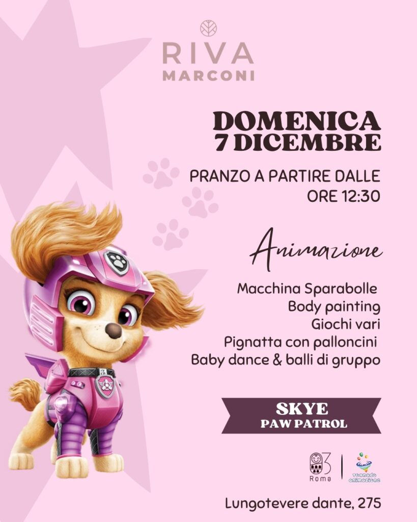 Domenica 7 dicembre da Riva Marconi torna l’appuntamento dedicato alle famiglie e ai più piccoli. A partire dalle 12:30, un ricco pranzo da gustare in compagnia e 3 ore di animazione continua per i bambini. In programma: Macchina spara-bolle Body painting creativo Giochi vari Pignatta con palloncini Baby dance & balli di gruppo Ospite speciale: […]