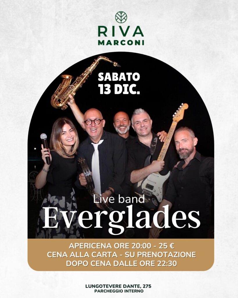 La musica dal vivo torna protagonista a Riva Marconi con una serata completa, da vivere dall’apericena al dopocena. Si parte alle 20:00 con l’apericena: un buffet ricco accompagnato da drink a 25 € a persona, perfetto per iniziare la serata in relax. Per chi preferisce una cena più tranquilla, è disponibile la cena alla carta […]
