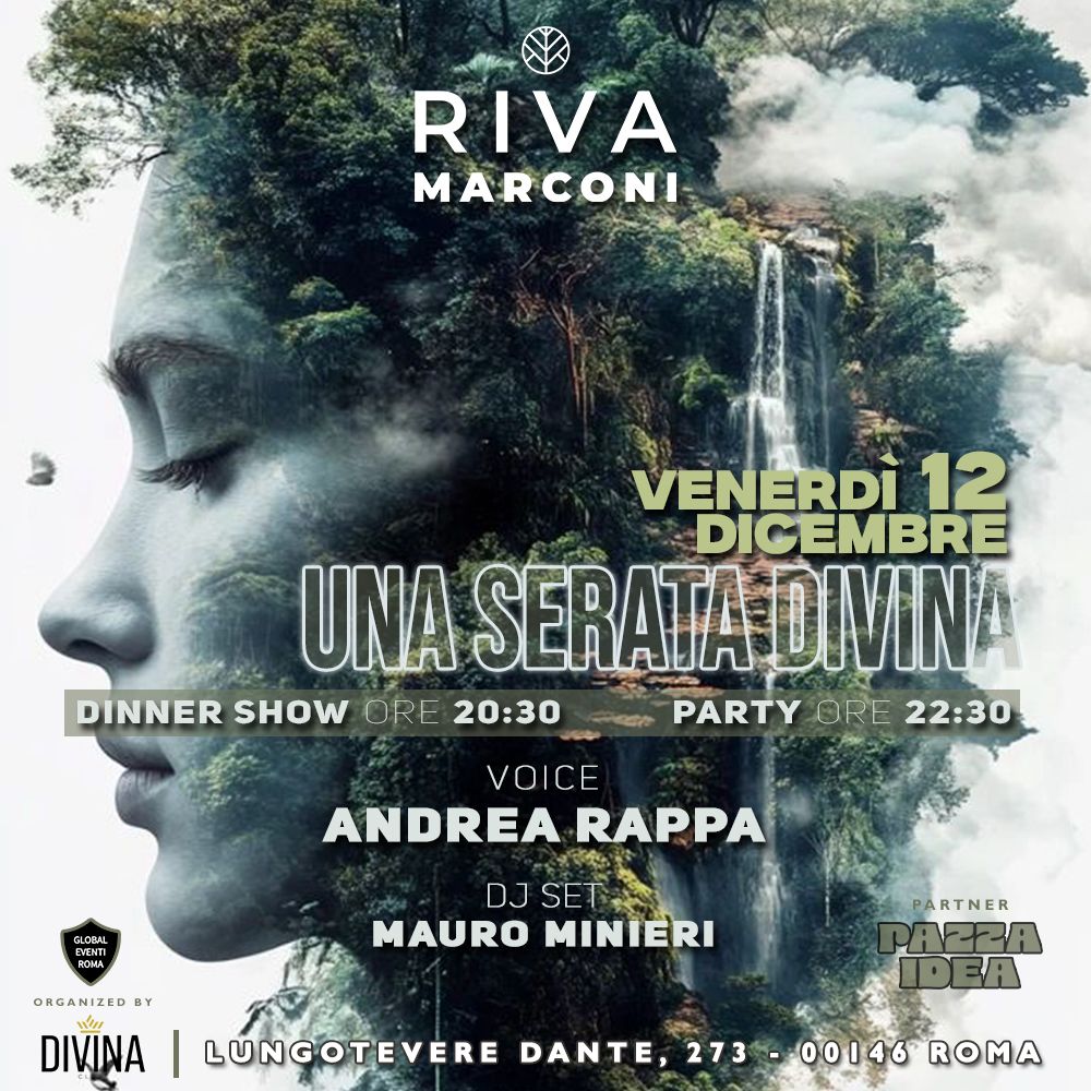 Il venerdì sera da Riva Marconi è una promessa mantenuta: divertimento, eleganza e un’atmosfera che lascia il segno. Il 12 dicembre torna Una Serata Divina, con la voce di Andrea Rappa ad accendere l’aperitivo-cena e il DJ set di Mauro Minieri a far ballare fino a notte fonda. Si inizia alle 20:30 con un dinner […]