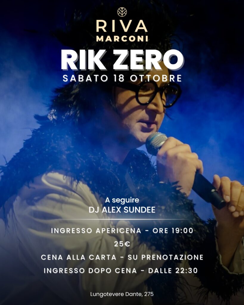 Sabato 18 ottobre, preparati a vivere una serata fuori dal comune: Riva Marconi si accende con l’energia e l’estro di Rik Zero, in un dinner show pieno di emozioni e adrenalina, al ritmo delle migliori canzoni del magico Renato Zero! A seguire, si balla con il DJ Set di Alex Sundee per continuare la notte […]