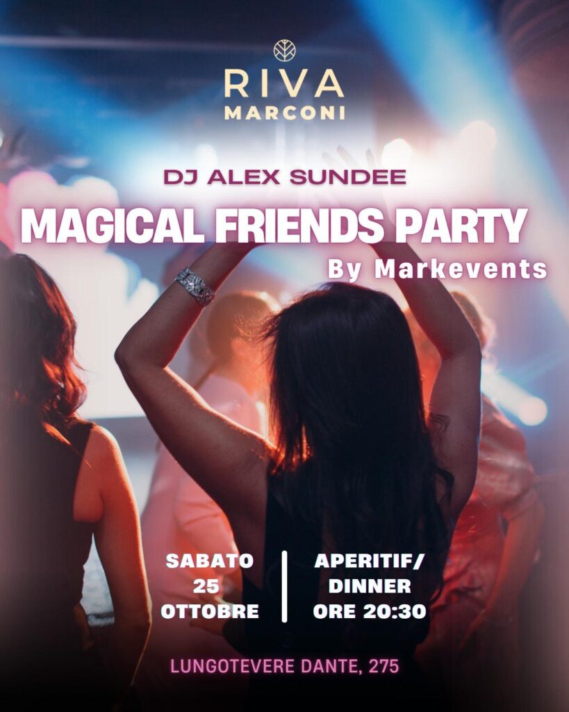 Riva Marconi presents: Magical Friends Party by Markevents Sabato 25 ottobre, dalle 20:30, vieni a vivere una serata speciale dedicata all’amicizia, al divertimento e all’energia positiva che solo un party ben fatto può regalare! In consolle: DJ Alex Sundee, pronto a far muovere ogni tavolo. Scegli se iniziare con un aperitivo elegante o con una […]
