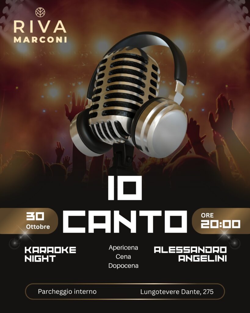 Giovedì 30 ottobre, Riva Marconi apre le porte al divertimento con una nuova serata IO CANTO – Karaoke Night, condotta da Alessandro Angelini. A partire dalle 20:00, scegli la formula che preferisci — apericena, cena o dopocena — e preparati a salire sul palco per cantare la tua canzone del cuore. Microfoni aperti, atmosfera frizzante […]