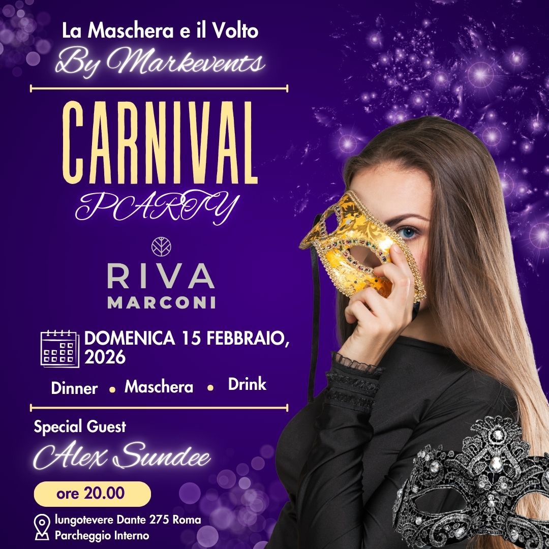 Domenica 15 febbraio, Riva Marconi si trasforma in un palcoscenico di fascino e suggestione con “La Maschera e il Volto”, il Carnival Party firmato Markevents che celebra il lato più elegante e intrigante del Carnevale.