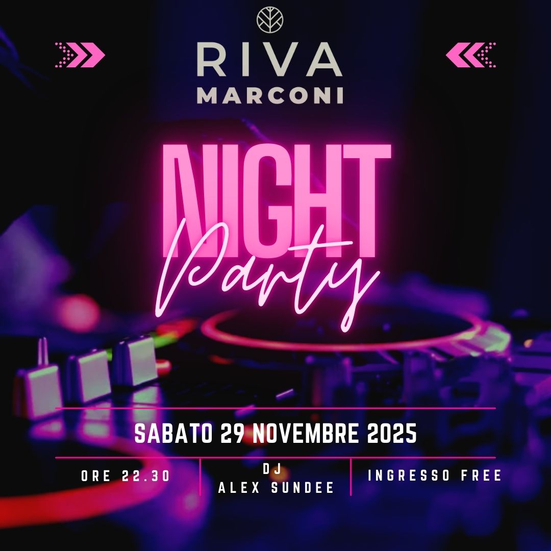 Sabato 29 novembre, Riva Marconi si trasforma in un dancefloor a cielo aperto con il Night Party, una serata esplosiva dedicata a chi ama vivere il weekend senza limiti.