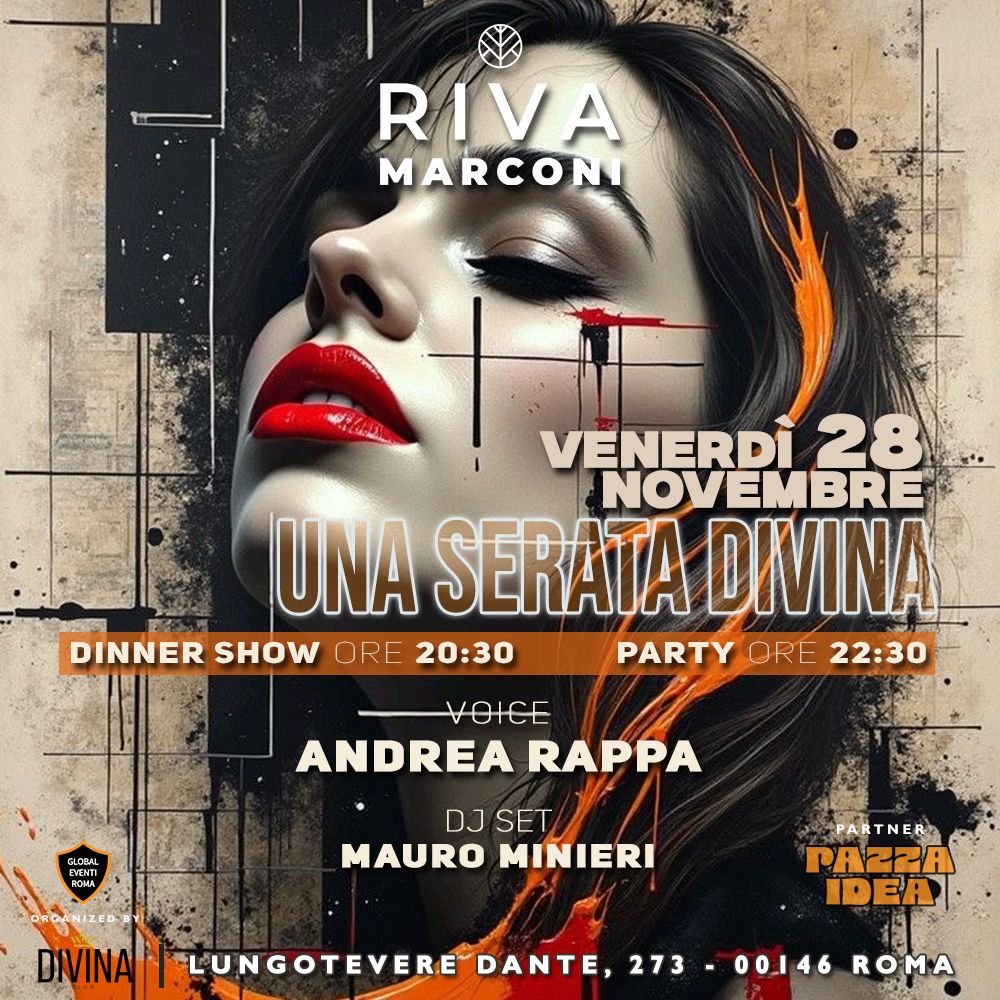 Venerdì 28 novembre, Riva Marconi apre le porte a una nuova edizione di Una Serata Divina: l’appuntamento che unisce eleganza, spettacolo e ritmo.