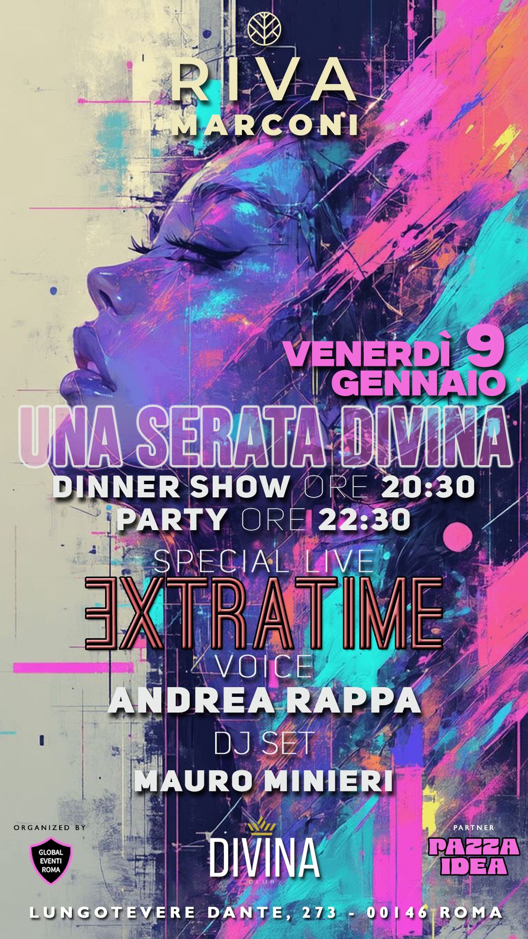 Venerdì 9 gennaio Riva Marconi torna a vestire l’eleganza e l’energia di Una Serata Divina, il format che unisce cena, spettacolo dal vivo e party in un’unica esperienza coinvolgente.