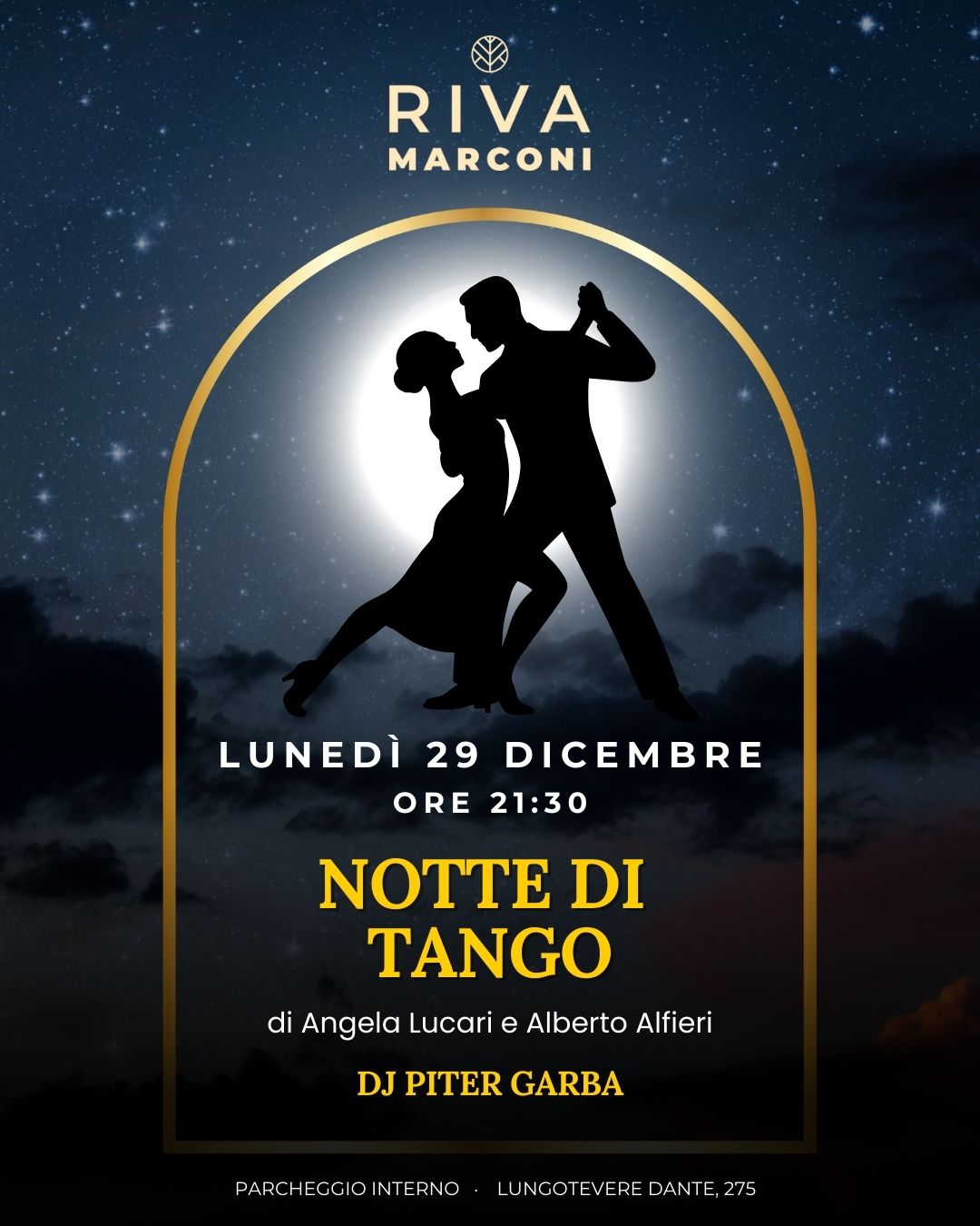 Lunedì 29 dicembre Riva Marconi si trasforma in un palcoscenico intimo e suggestivo per una Notte di Tango capace di coinvolgere, emozionare e far vibrare ogni passo.